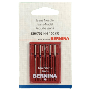 As agulhas para gangas - jeans nº100 da Bernina são perfeitas para costurar gangas e todos os materiais que tenham a mesma resistência.