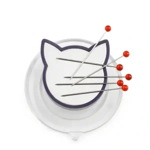 Alfineteira íman Gato apresenta uma superfície em forma de gato com uma base de ventosa para uso na frente da sua máquina de costura ou em qualquer superfície de trabalho lisa. Os seus alfinetes e agulhas estão sempre ao seu alcance enquanto trabalha.