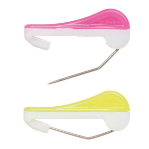 Os alfinetes maravilhosos também são ótimos quando um pin mais resistente e mais fino é necessário para perfurar as camadas sem dobrar. Além disso, não há necessidade de pegar o tecido durante a fixação. Simplesmente prenda através das camadas e empurre o fecho para baixo. Para desafixar, empurre para baixo e para cima.
