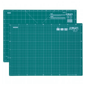 Tapete de corte de qualidade profissional auto reparável especialmente projetado para uso com cortadores rotativos. Uso frente e verso com uma escala métrica de um lado Imperial no reverso.