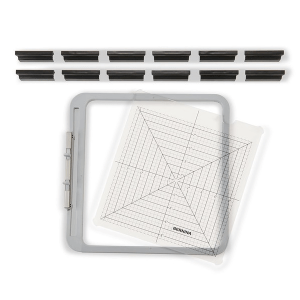 Posicione e fixe facilmente os projetos de acolchoamento no bastidor, fixando as molas reposicionáveis. O template em acrílico espesso permite-lhe visualizar a colocação precisa do projeto no bastidor, ao mesmo tempo que proporciona uma tensão adequada.