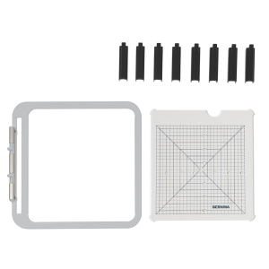 O bastidor de grampo pequeno BERNINA é o bastidor de bordar ideal para quilters. A forma quadrada acomoda perfeitamente desenhos quadrados comuns para quilting. Isto economiza estabilizador de bordado e tecido em comparação com os bastidores ovais.