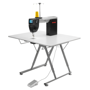 As máquinas podem ser conjugadas com uma mesa normal, uma mesa ajustável em altura ou com uma mesa dobrável e ajustável em altura. As BERNINA Q 16 PLUS e Q 20 são compatíveis com o BERNINA Studio Frame se se pretender realizar uma atualização para o bastidor de acolchoamento.