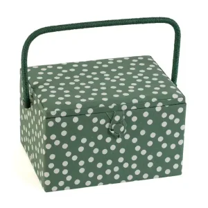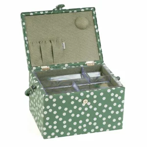 Caixa de costura grande revestida em tecido 100% algodão com um estampado de bolas.