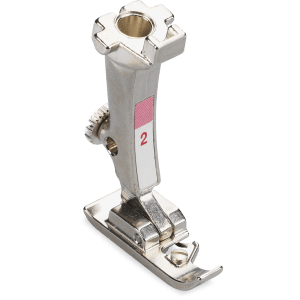 O calcador corte e cose BERNINA #2 é ideal para costuras de overloque e bainhas. Ele é especialmente próprio para costuras perfeitas.