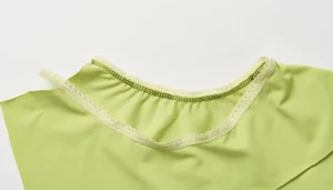5. Nota: use uma pinça para colocar o tecido e a renda por baixo das agulhas.