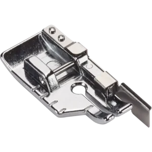 O calcador de patchwork tem um orifício adicional, à esquerda do orifício da agulha, permitindo obter costuras com uma profundidade de 3,18 mm. Para tal, mova a agulha toda para a esquerda e guie o tecido ao longo da borda interior esquerda do calcador.