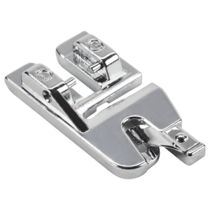 Desligue a máquina. Coloque o calcador conforme indicado no manual de instruções e ative a função Dual Feed.