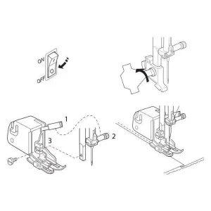 calcador. Coloque o calcador de duplo arrasto na barra do calcador e aperte com o parafuso.