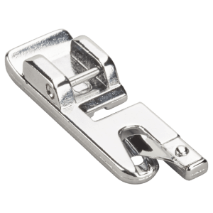 Baixe o calcador e continue a coser. Ao coser, dobre um pouco o tecido a coloque-o à esquerda. Guie-o uniformemente.