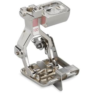 Calcador para bordas Bernina #10D é a ajuda prática para costurar bordas acabadas regulares e retas.