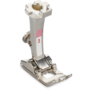 O calcador para casa de botão #3 é apropriado para casear casas de botão, bem como para franzir com fio ou elástico (smocking). Graças aos seus práticos sulcos, o calcador para casa de botão #3 pode deslizar suavemente sobre os filetes do caseado da casa de botão, permitindo uma costura particularmente fácil e perfeita.