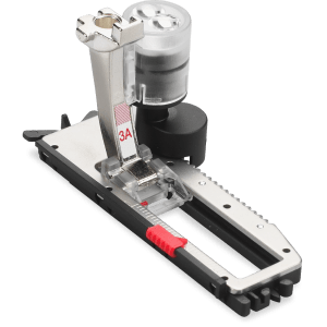 O calcador de casear automatico bernina #3A para casa de botão com deslizador torna muito fácil fazer casas de botão do mesmo comprimento. Com o calcador #3B, o comprimento desejado é definido antes manualmente com a ajuda do marcador da régua.