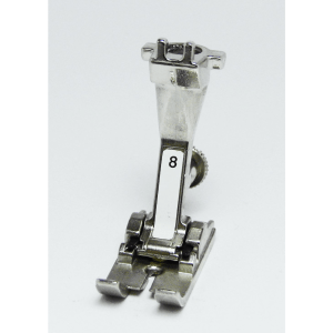 O calcador para gangas Bernina #8 também é ideal para materiais finos e meio pesados de costura reta . Note que o duplo transporte BERNINA somente funciona com os calcadores “D”.