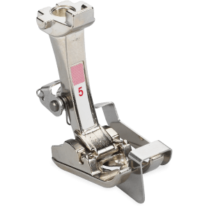 Apropriado praticamente para todos os tecidos, o calcador para costura invisível #5 também facilita a costura de bordas estreitas em tecidos médios e densos com a agulha posicionada à direita ou à esquerda.