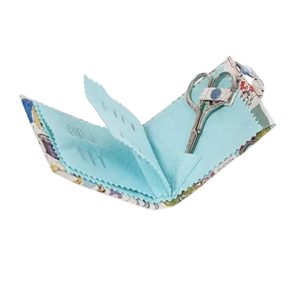 Estojo de agulhas feito de tecido 100% algodão com um estampado.