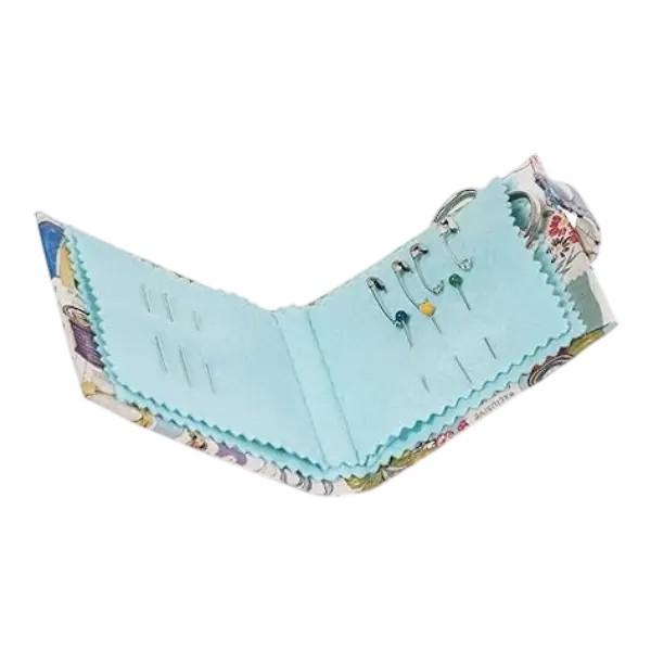 Páginas interiores em feltro macio para guardar agulhas, alfinetes e alfinetes de segurança.
