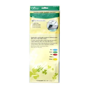 Papel para transferir de um lado, embalagem é composta por 5 cores diferentes (azul, verde, vermelho, branco, amarelo).