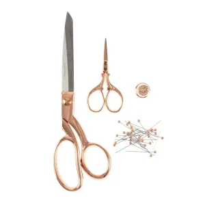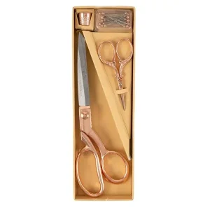 Inclui uma tesoura de costura, uma tesoura de bordar, um dedal e 25 alfinetes