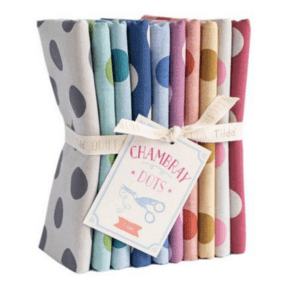 Tilda Basics Chambray Dots Fabrics Fat Quarter Bundle inclui 10 tecidos. Uma coleção de belos tecidos Chambray com uma qualidade de colcha adorável. Tecido com trama colorida e envoltório branco, a coleção Chambray tem uma aparência rústica e suave que fará maravilhas para qualquer colcha.