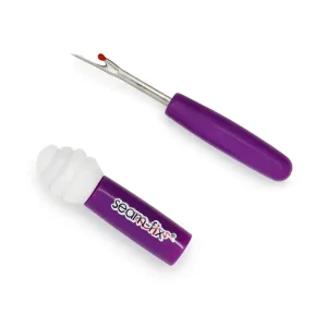 Com o Descosedor corte os pontos indesejados com facilidade. Este descosedor de costuras fácil de utilizar tem uma lâmina afiada que corta as linhas indesejadas e uma ponta especial que as afasta cuidadosamente. Basta retirar a tampa, utilizar a lâmina, voltar a colocar a tampa e utilizar a ponta de borracha para agarrar e puxar as linhas soltas.