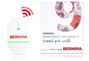 O software de ligação da BERNINA foi instalado em conjunto com o software para bordados 9 da BERNINA, o qual é adquirido em separado. Também poderá enviar modelos a partir de vários computadores através de um computador principal que esteja a executar a ligação Wi-Fi da BERNINA. Possui várias máquinas para bordados? Sem problema, porque podem ser adquiridos dispositivos Wi-Fi adicionais.