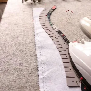 Simplifica os ajustes de bainhas curvas em tecidos delicados ou camadas espessas utilizando a régua termicamente estável, que se mantém firme durante a medição e mantém a forma mesmo com prensagem intensiva a vapor.