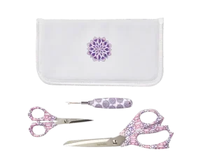 Um kit de tesouras a condizer criado por Yaya Han, incluindo tesouras para tecido e bordado e um desmanchador de costuras, traz o seu design exclusivo diretamente para as suas mãos.