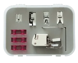 A mesa extensora incluída, pode ser facilmente encaixada na bernette 38 e oferece-lhe mais espaço para grandes projetos de costura, como por exemplo, vestidos, quilts ou cortinas.