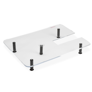 A mesa extensora em plexiglass para quilting facilita o trabalho em projetos grandes de quilt como mantas, quilts e decorações de parede, aumentando sua superfície de trabalho e distribuindo o peso do quilt regularmente sobre toda a mesa. A mesa extensora em plexiglass para quilting é muito estável e o tecido desliza como um sonho em sua superfície lisa. Usada com o calcador para quilting n. 29 ou calcador Echo-quilting e CutWork n. 44C,  a mesa lhe oferece resultados perfeitos mesmo em projetos complexos de quilting.