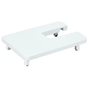 A mesa extensível permite-lhe alargar a superfície de trabalho existente e disponibiliza uma unidade de suporte confortável para grandes projetos de costura. E o tecido pode ser deslocado sobre esta com facilidade.
