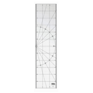 Régua 15cm x 60cm, modelo grade métrica. Antiderrapante para corte estável e seguro e fosco com linhas de grade pretas para maior clareza em tecidos de cores claras e escuras. As réguas permitem ao usuário fazer medições precisas e cortar ângulos de 15°, 30°, 45°, 60° e 90° durante as aplicações de costura e quilting. Acomoda usuários destros e canhotos.