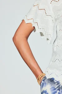 Travel Bug: blusa de renda com remate, calças de verão com aba