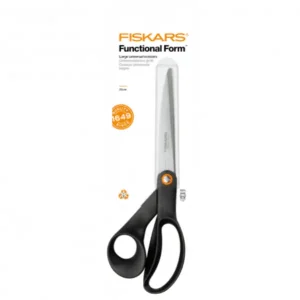 Tesoura Fiskars 21cm com lâminas grandes de aço inoxidável garantem um excelente desempenho e suavidade da ação do corte. Os cabos exclusivos patenteados são ergonómicos e garantem melhor controlo e conforto. Estas tesouras são versáteis para todos os tipos de cortes em casa e são ideais para cortar papel, tecidos e materiais laminados.